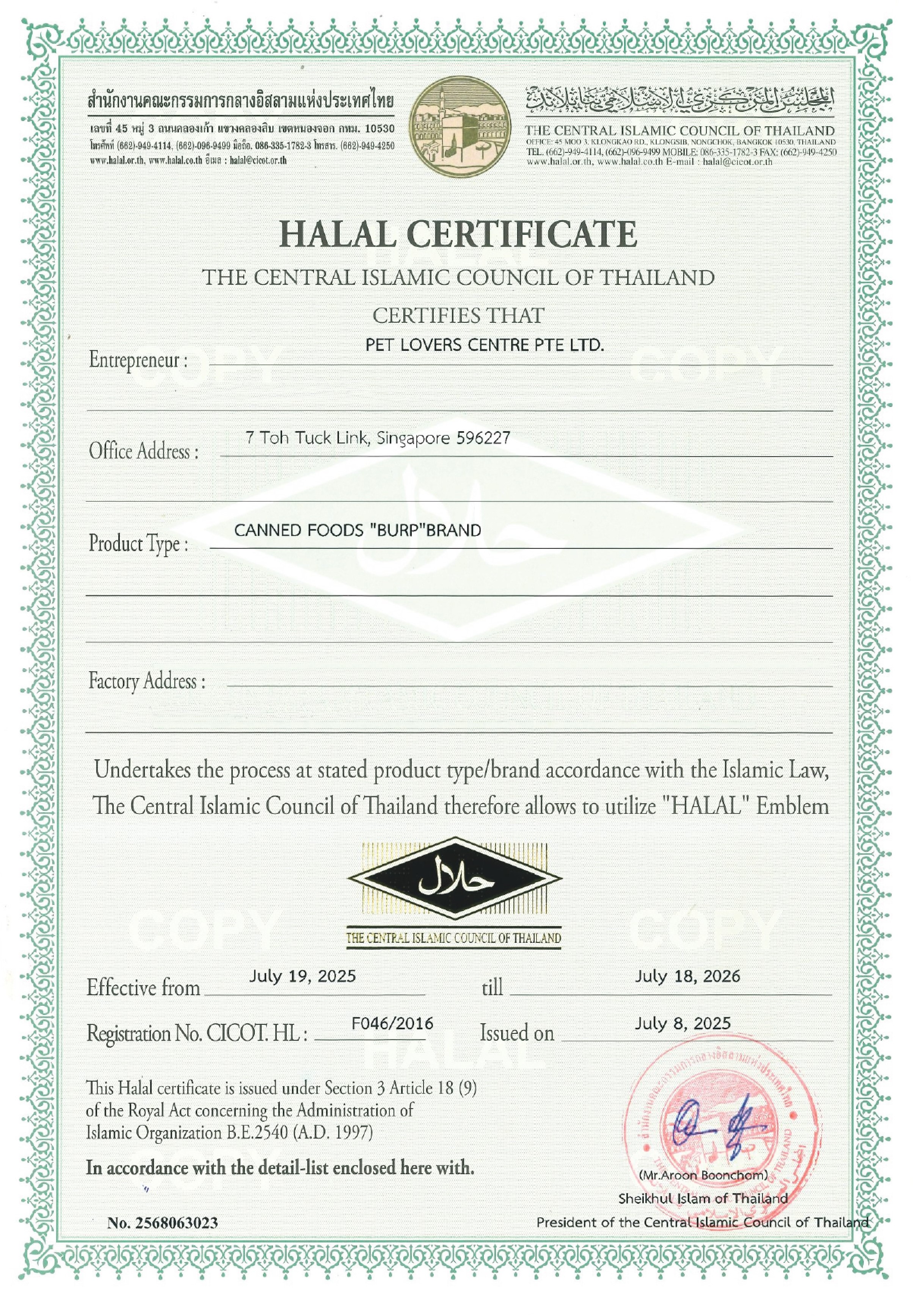 Burp! understands that pet owners want both nutrition and assurance. That’s why selected Burp! products are Halal-certified, meeting strict guidelines set by recognised Halal authorities.