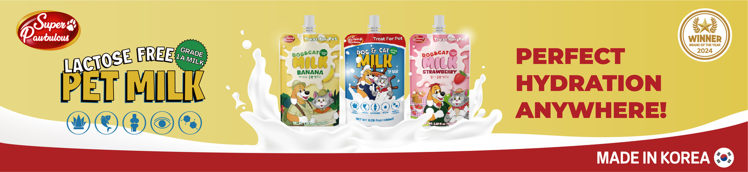 Super Pawbulous lactose-free milk is formulated just for your pets, offering a range of health benefits. Available in Original, Banana and Strawberry flavours, each is a wholesome treat your pet will love! This 99% Grade 1A milk is as pure as it gets, free from artificial preservatives and manufactured in an ISO-certified facility in Korea. This delicious pet milk comes in a convenient packaging that requires no water mixing. It is rich in yucca extract to reduce ammonia, offering anti-inflammatory properties to enhance your pet’s overall well-being.